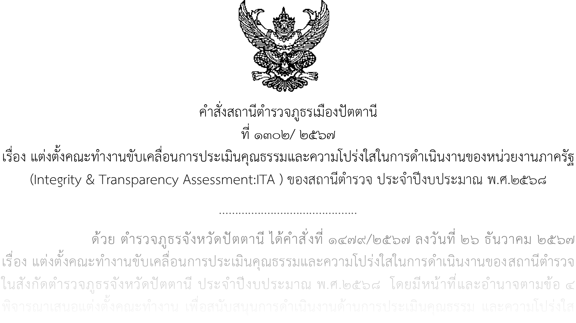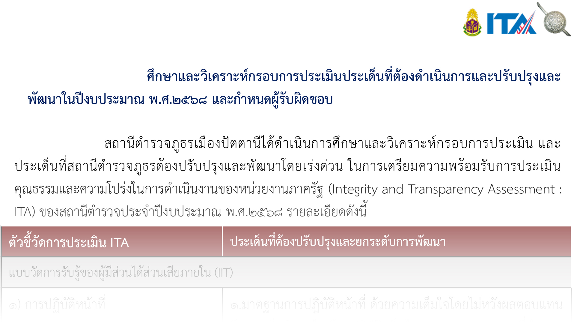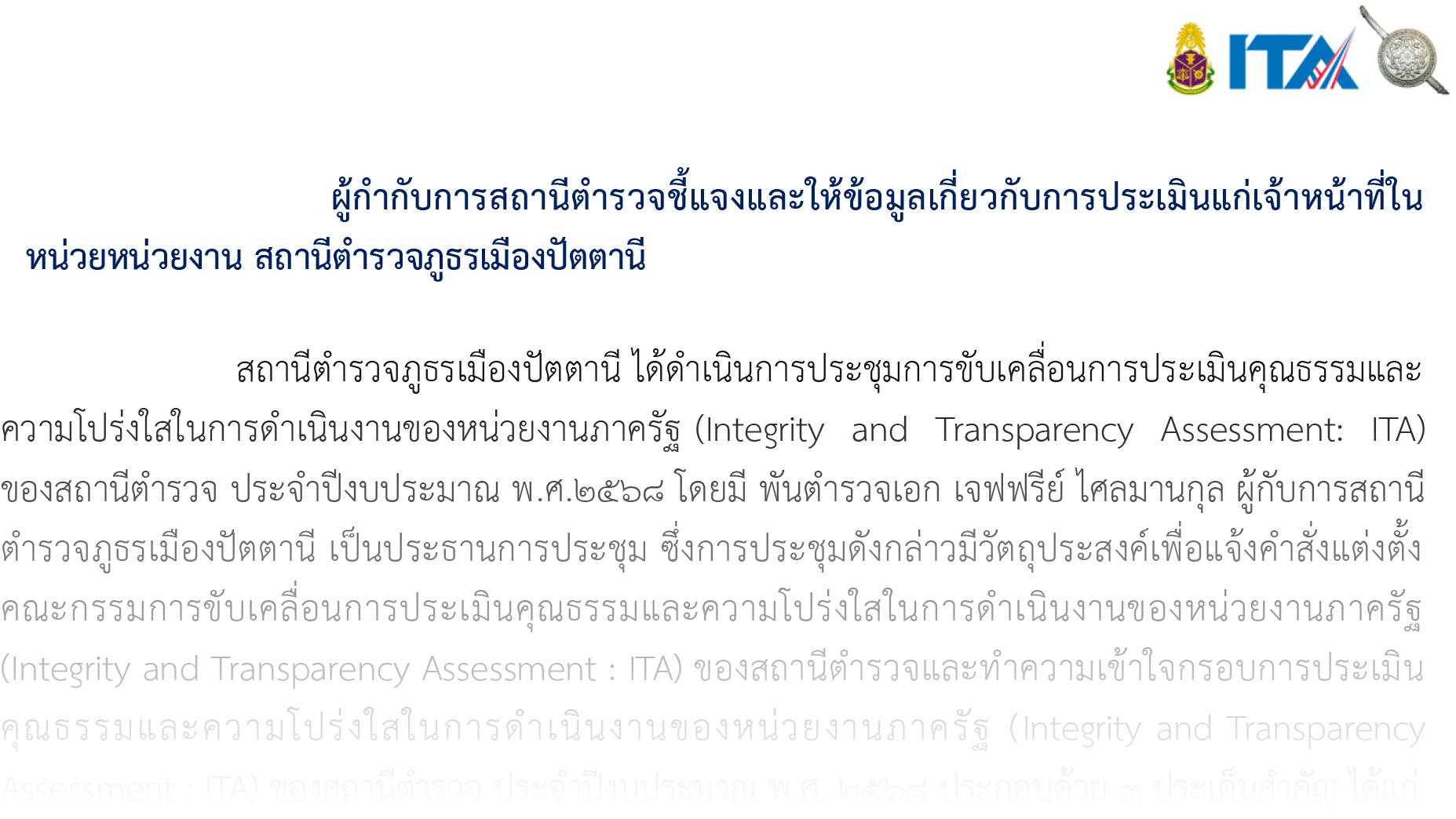 (Integrity & Transparency Assessment:ITA ) ของสถานีตำรวจ ประจำปีงบประมาณ พ.ศ. 2568