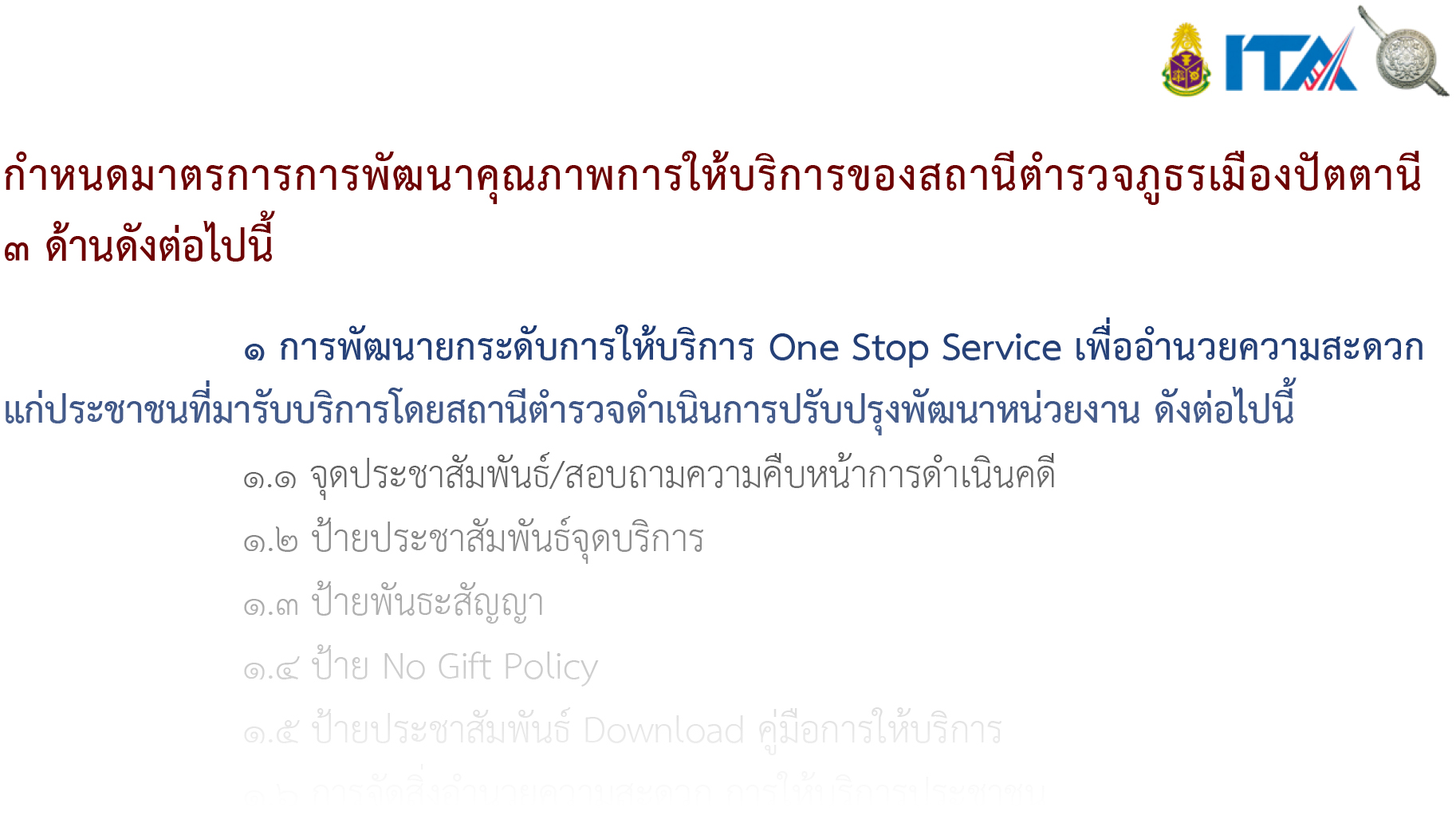การกำหนดมาตรการการพัฒนาคุณภาพการให้บริการของสถานีตำรวจภูธรเมืองปัตตานี 3 ด้าน