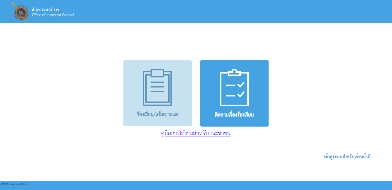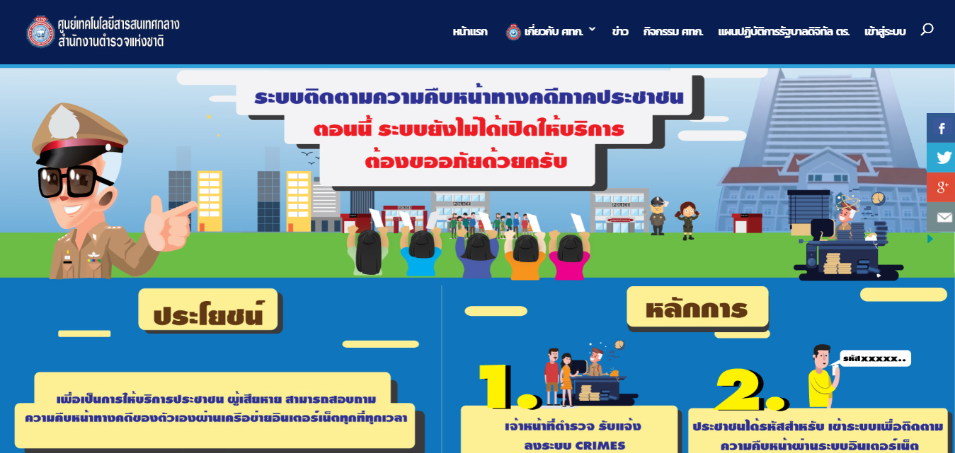 ท่านสามารถติดต่อขอรับรหัสผู้ใช้และรหัสผ่าน ได้จากพนักงานสอบสวนเจ้าของคดีที่รับแจ้งความคดีของท่านเท่านั้น